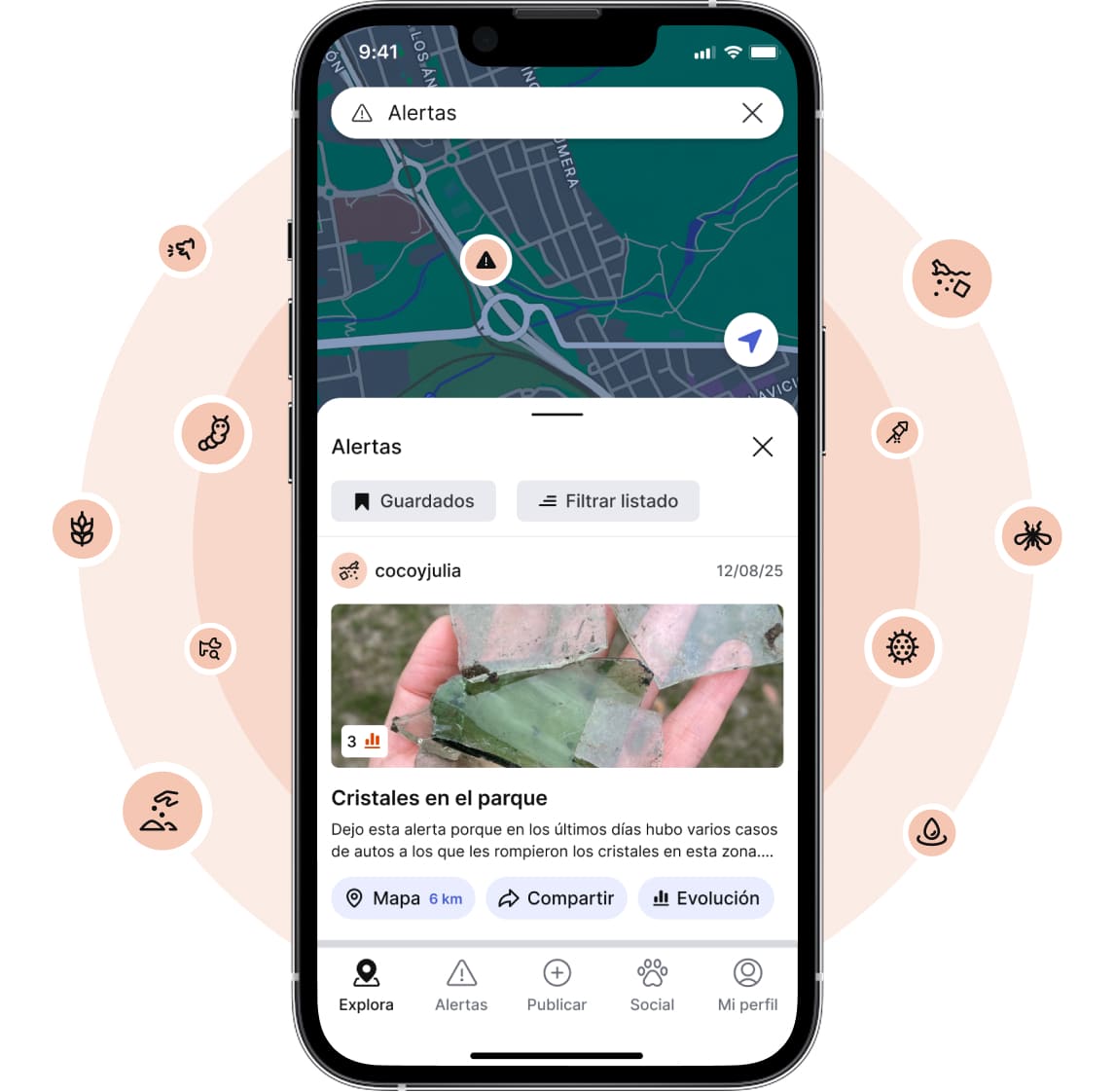 - Alertas de peligro en tiempo real